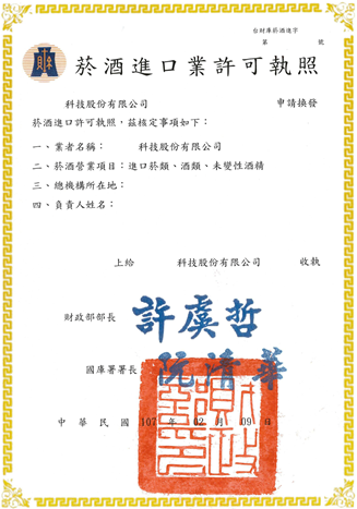 菸類輸入業、酒類輸入業登記設立所需準備資料